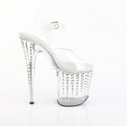 8 Inch Heel, 4 Inch Platform Ankle Strap Sandal with Rhinestone