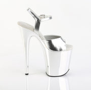 Additonal Description: 8" Heel, 4" Platform. 8" (200mm) Heel, 4" (100mm) Platform Ankle Strap Sandal w/ Chrome Plated Platform Bottom