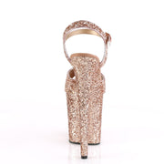 Additonal Description: 8" Heel, 4" Platform. 8" (200mm) Heel, 4" (100mm) Platform Glitter Ankle Strap Sandal