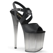 Additonal Description: 8" Heel, 4" Platform. 8" (200mm) Heel, 4" (100mm) Platform Criss-Cross Ankle Strap Sandal Featuring Faded Color Platform Bottom