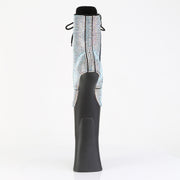 Additonal Description: 11" Heelless, 6 1/4" Platform. 11" (279mm) Heelless, 6 1/4" (160mm) Platform Lace-Up Front Ankle Boot Featuring Allover Blanketed Rhinestone Embellishments on Upper, Inner Side Zip Closure. **WARNING: Extreme Height & Heelless Design. Not Recommended for Walking or Dancing.