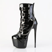 Additonal Description: 7" Heel, 3" Concealed Platform. 7" (178mm) Stiletto Heel, 3" (76mm) Concealed Platform Ankle Boot Featuring 6 Ornamental Front Buckle Straps and Clip-On Hanging Chain Detail, Inner Side Zip Closure. Shaft Height: Approximately 6 Inches (16cm).