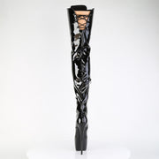 Additonal Description: 7" Heel, 3" Concealed Platform. 7" (178mm) Stiletto Heel, 3" (76mm) Concealed Platform Fully Lined Lace-Up Front Crotch Boot w/Speed Hooks & Back Slit Lace Detail, 1/3 Inner Side Zip Closure. Shaft Height: Approximately 26 Inches (66cm).