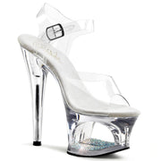 Additonal Description: 7" Heel, 2 3/4" Platform. 7" (17.8cm) Heel, 2 3/4" (7cm) Platform Ankle Strap Sandal Featuring Rhinestone Detail In the Platform