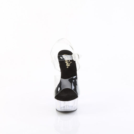 DELIGHT 608 Clear-Black/Clear Platform Ankle Strap SandalDetails: 6 Inch Heel, 1 3/4 Inch Platform Brand: Pleaser.