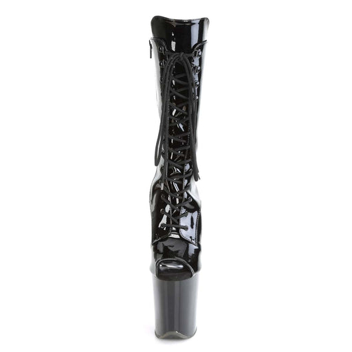 FLAMINGO 1051 Black Patent/Black Platform Peep Toe Lace-Up Mid Calf Boot, Side ZipDetails: 8 Inch Heel, 4 Inch Platform Brand: Pleaser.