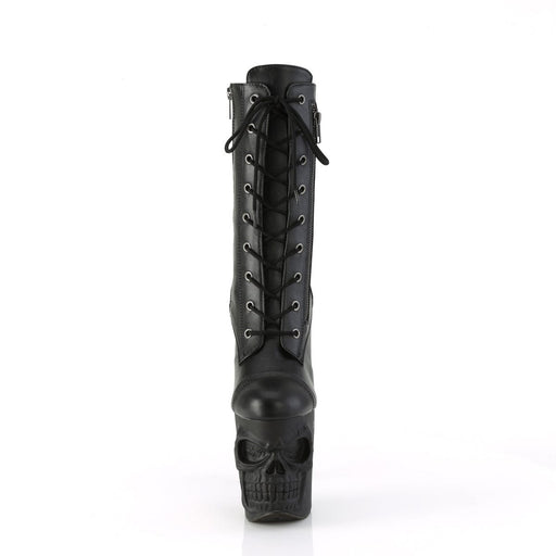 RAPlatformURE 1047 Black Faux Leather/Black Matte Skull Platform Mid Calf Boot, Inside ZipDetails: 8 Inch Finger Bone Heel, 4 Inch Skull Platform B...