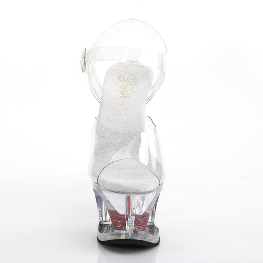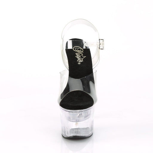 FLASHDANCE 708 Clear-Black/Clear Platform LED Illuminated Ankle Strap SandalDetails: 7 Inch Heel, 2 3/4 Inch Platform Brand: Pleaser.