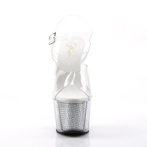 STARDUST 708 Clear/Silver Chrome R/S Studded Slv Chrome Platform Ankle Strap SandalDetails: 7 Inch Heel, 2 3/4 Inch Platform Brand: Pleaser.