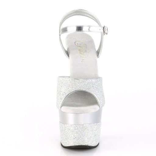 View full detailsADORE 709 2G Silver Multi Glitter/Silver Multi Glitter Heel, 2 3/4" Platform Ankle Strap Sandal with Glitter Wrapped Platform Details: 7 Inch Heel,...