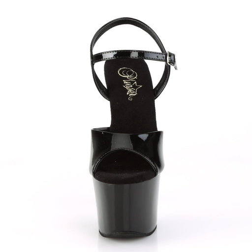 View full detailsSKY 309CRS Black/Black-Silver AB Rhinestones Platform Ankle Strap SandalDetails: 7 Inch Heel, 2 3/4 Inch Platform Brand: Pleaser.