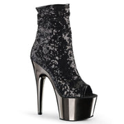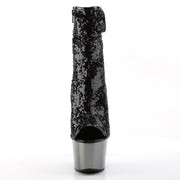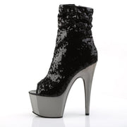 ADORE 1008SQ Black Sequins/Dark Pewter Chrome Platform Peep Toe Sequins Ankle Boot, Side Zip