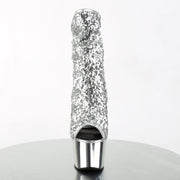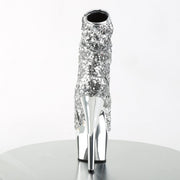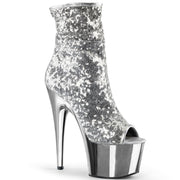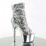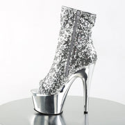 ADORE 1008SQ Silver Sequins/Silver Chrome Platform Peep Toe Sequins Ankle Boot, Side Zip