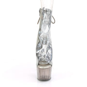 ADORE 1018HCT Clear-Silver Hologram TPU/Smoke Tinted Tinted Platform Open Toe Ankle Boot, Side Zip