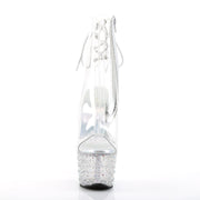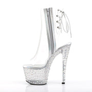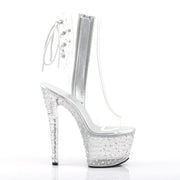 STARDANCE 1018C 7 Clear/Clear-Silver Multi Rhinestones Platform Open Toe/Heel Ankle Boot, Side Zip