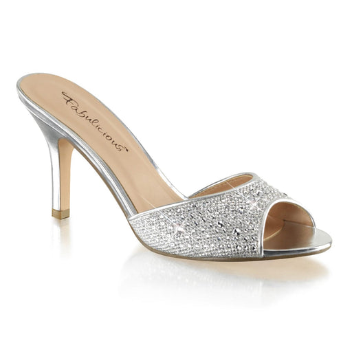 LUCY 01 Silver Glitter Mesh Fabric Heel, Slide Embellished with Rhinestone GlitterDetails: 3 1/4 Inch HeelBrand: Fabulicious.