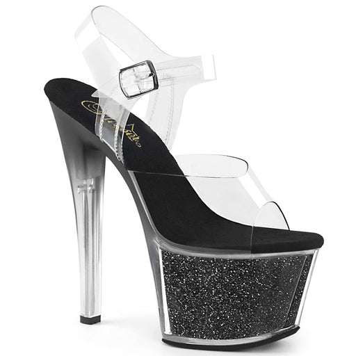 SKY 308G T Clear/Black Glitter Inserts Platform Ankle Strap Sandal with Tinted HeelDetails: 7 Inch Heel, 2 3/4 Inch Platform Brand: Pleaser.