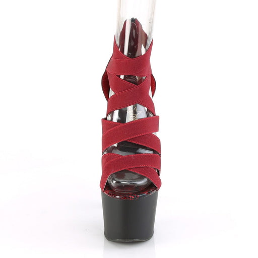 ADORE 748SP Wine Elastic Band-Snake Print Patent/Black Matte Platform Close Back Criss Cross Sandal, Back ZipDetails: 7 Inch Heel, 2 3/4 Inch Brand...