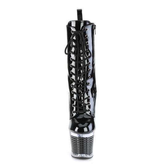 SPECTATOR-1021RS Black Faux Leather/Silver Rhinestones-Chrome