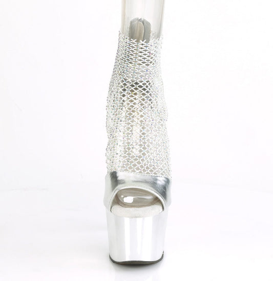 SAVE 39% Final SaleADORE-765RM Silver Metallic Pu-Rhinestones Mesh/Silver Chrome