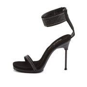 Additonal Description: 4 1/2" Heel, 1/4" Platform. 4 1/2" (114mm) Stiletto Heel, 1/4" (6mm) Mini-Platform Sandal Featuring Rhinestone Embellishment on Thin Over-The-Toe Strap and Wide Ankle Cuff, Back Zip Closure