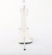 Additonal Description: 4 1/2" Heel, 1/4" Platform. 4 1/2" (114mm) Stiletto Heel, 1/4" (6mm) Mini-Platform Sandal Featuring Rhinestone Embellishment on Thin Over-the-Toe Strap and Wide Ankle Cuff, Back Zip Closure