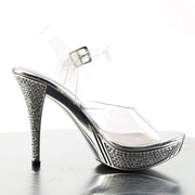 ELEGANT 408 Clear/Silver Chrome Platform Ankle Strap Sandal with Rhinestones