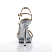 Additonal Description: 5" Heel, 3/4" Platform. 5" (12.7cm) Heel, 3/4" (1.9cm) Platform Ankle Strap Sandal with Rhinestones Embellishment