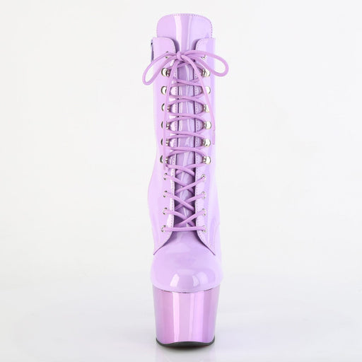 ADORE 1020 Lavender Patent/Lavender Platform Lace-Front Ankle Boot, Side ZipDetails: 7 Inch Heel, 2 3/4 Inch Platform Brand: Pleaser.