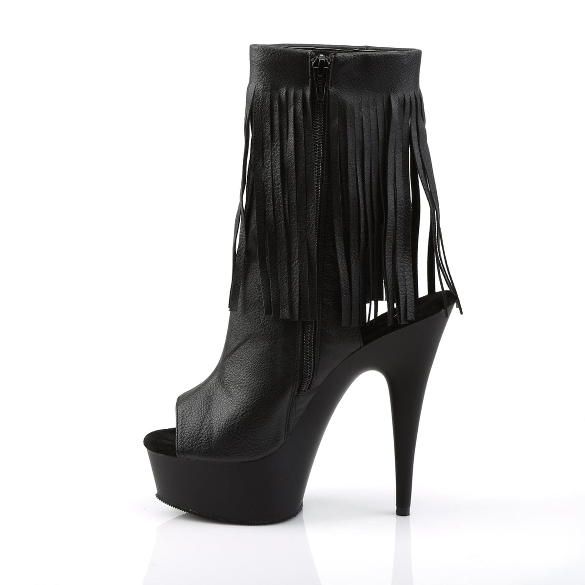 DELIGHT 1019 Black Faux Leather/Black Matte Platform Open Toe/Heel Fringe Bootie, Side Zip