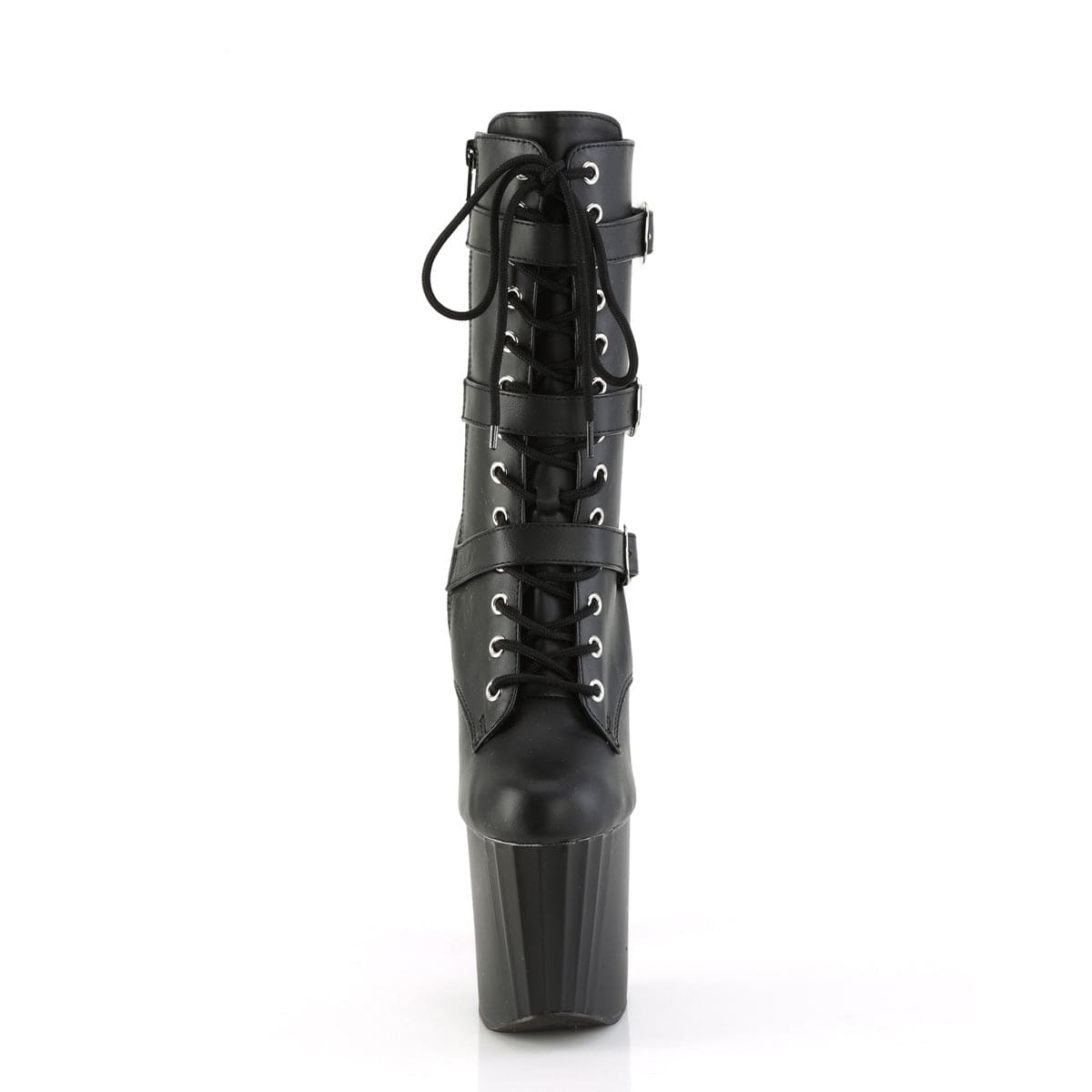 ENCHANT 1043 Black Faux Le/Black Matte Platform Buckled Strap Ankle Boot, Side Zip