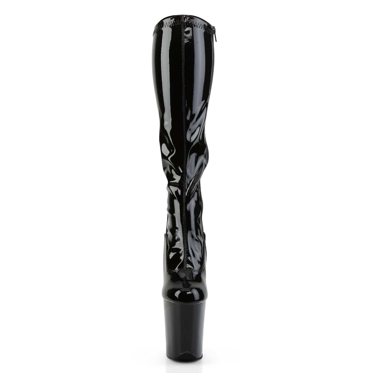FLAMINGO 2000 Black Stretch Patent/Black Platform Stretch Knee Boot, Side Zip