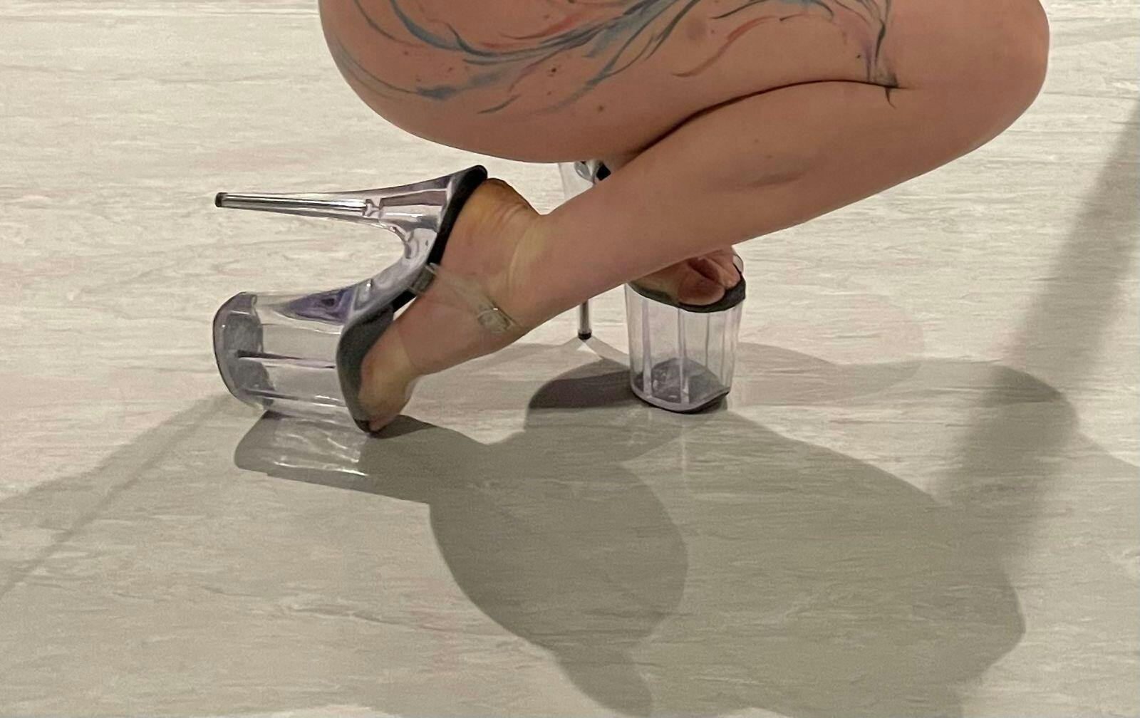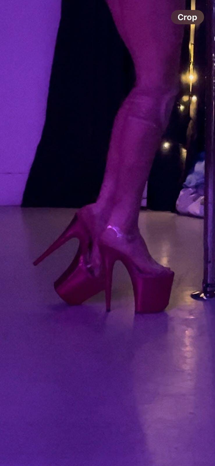 Additonal Description: 8" Heel, 4" Platform. 8" (20.3cm) Stiletto Heel, 4" (10.2cm) Platform Ankle Strap Sandal with Chrome Plated Bottom