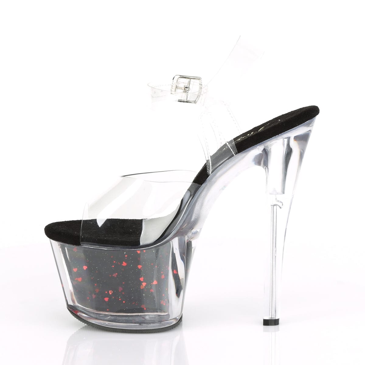 SKY 308WHG Clear/Black-Red Glitter Platform Ankle Strap Sandal with Liquid Infused Platform